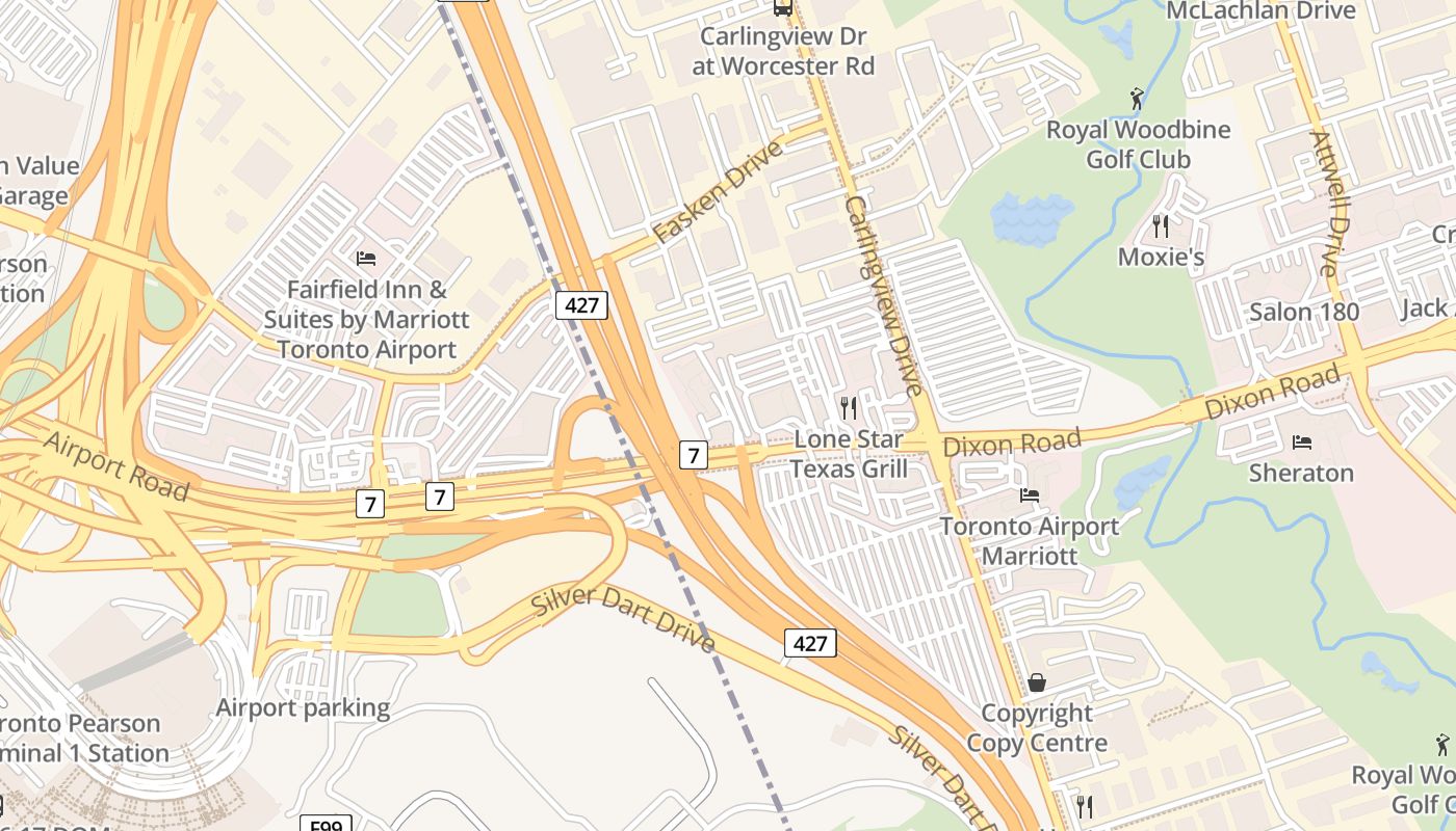 Lone Star Texas Grill is adjacent to Holiday Inn Toronto International Airport By Ihg, 300 metres away.